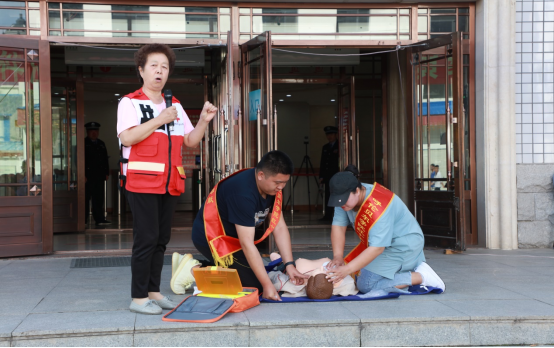 呼伦贝尔市红十字会应急救护培训中心的刘秀琴老师从“紧急伤员救治和伤员紧急包扎”两个方面进行了详细讲解和现场演示。