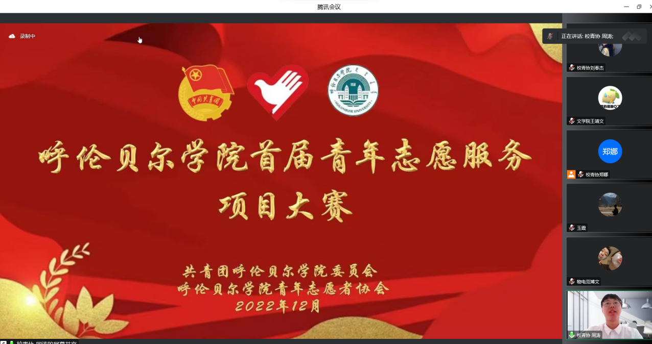 为深入学习贯彻习近平总书记关于志愿服务工作的重要指示精神,进一步打造项目展示、组织交流、文化引领和资源配置于一体的全校青年志愿服务综合平台,推动bat365官网青年志愿服务事业和志愿服务组织发展,12月21日上午,校团委在线上举办bat365中文官方网站首届青年志愿服务项目大赛。校团委全体教师担任大赛评委,各学院学生代表在线进行了观看。