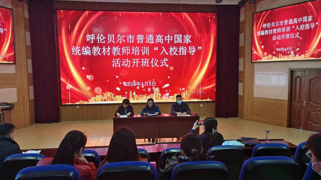 4月3日上午,由bat365官网承办的呼伦贝尔市普通高中国家统编教材教师培训“入校指导”活动开班仪式在海拉尔第一中学举办。继续教育学院院长莎茹莉、海拉尔第一中学副校长旦森扎布、呼伦贝尔市教育事业发展中心高中语文教研员徐建宏、入校指导专家团队及海拉尔第一中学三科教师全员参加了开班仪式。开班仪式由徐建宏教研员主持。