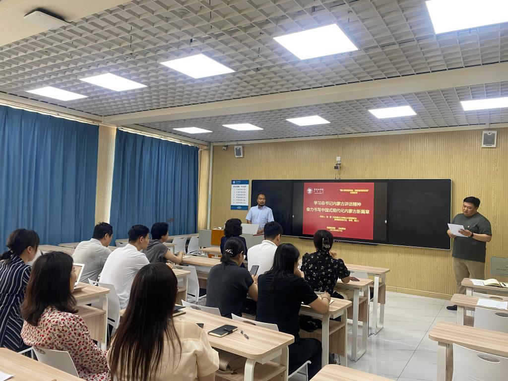 6月27日下午,党委统战部联合校知联会组织召开专题学习会——深入学习贯彻习近平总书记在内蒙古考察时的重要讲话精神。党委统战部全体党员、校知联会理事、归国留学人员代表参加学习,党委统战部副部长乌云图同志主持。