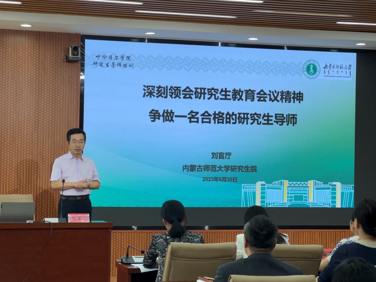 6月30日下午,研究生处在崇文楼A501会议室举办了硕士研究生指导教师岗前培训。培训邀请了内蒙古师范大学刘官厅教授作题为《深刻领会研究生教育会议精神,争做一名合格的研究生导师》的专题报告。培训会由研究生处处长姜明红主持,教育硕士、旅游管理硕士研究生指导教师、校外实践导师和研究生处全体教职工参加了培训。