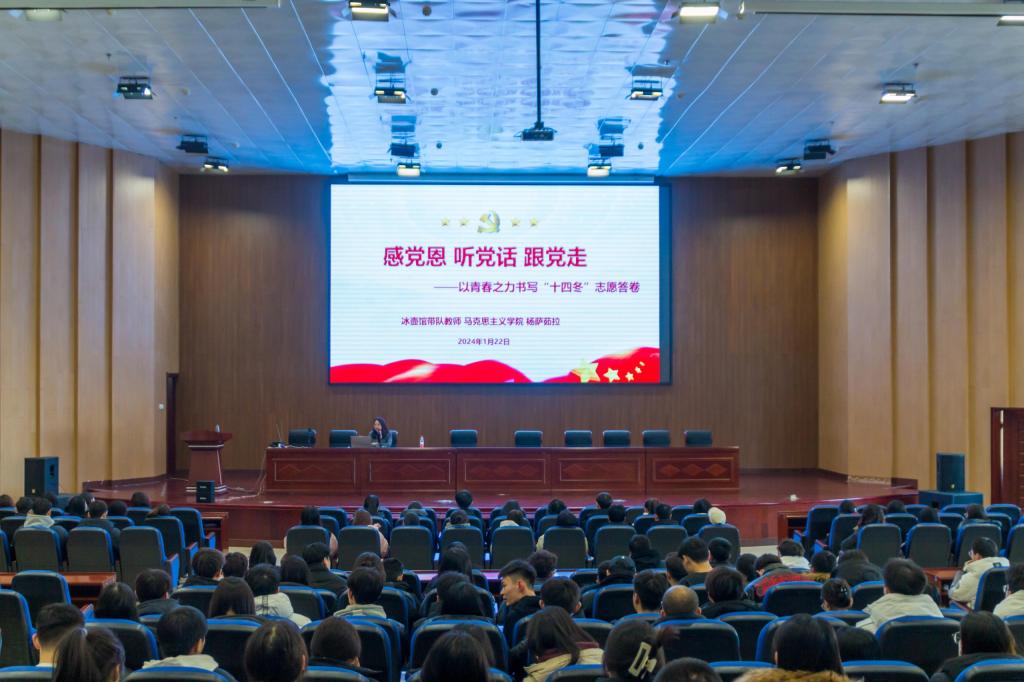 为进一步做好学校“十四冬”志愿者工作,团结带领志愿者在服务“十四冬”中成长成才,上好“十四冬”这堂“大思政课”,校团委分别于1月22日、24日组织在校800余名志愿者开展“感党恩、听党话、跟党走”主题团课,bat365官网冰壶馆带队教师、马克思主义学院教师杨萨茹拉主讲。