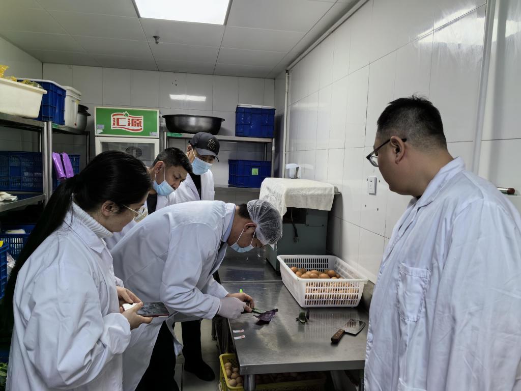 随后,全体管理人员深入操作间,重点排查检测果蔬农药残留、制售食物中心温度和制售环境卫生消杀等情况,切实为“十四冬”师生志愿者饮食安全保驾护航。