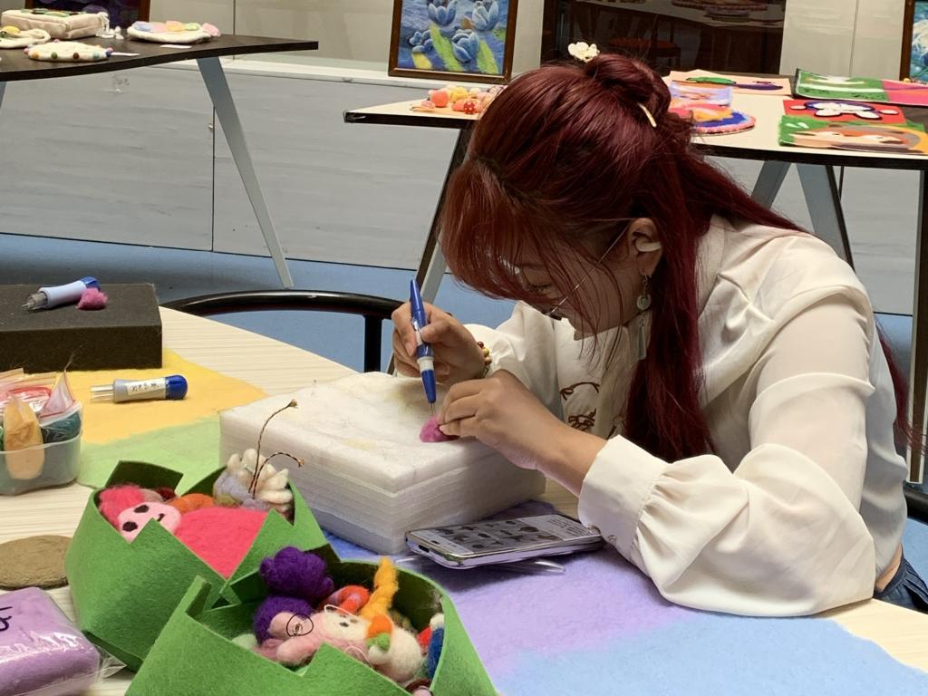 展览共展出学生作品200余件,其中,教育学院精心制作的羊毛毡作品43件、太阳花作品48件、桦树皮作品9件、民族头饰13件、耳饰27对、手链11件以及剪纸作品23幅;美术学院参展作品共计36件,其中版画作品6件、水彩作品12件、非遗文创产品10件、羊毛围巾4件、羊毛毡包4件;音乐与舞蹈学院展出陶艺作品1件。此次展出的作品不仅数量多、质量高,而且制作精致、惟妙惟肖,充分展现了民族文化的博大精深和中华传统纸艺、陶艺、编织、刺绣、版画、水彩画等非遗文创作品的独特魅力。