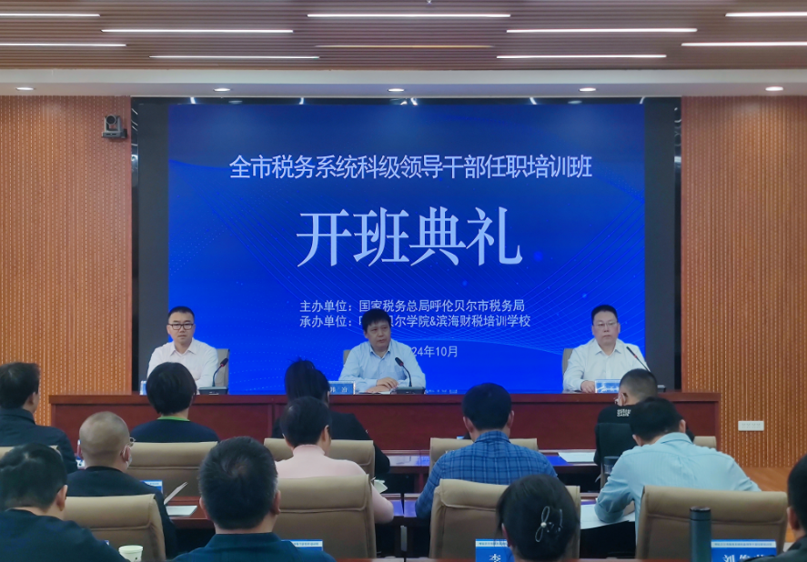 10月18日,国家税务总局呼伦贝尔市税务局在bat365中文官方网站崇文楼A座501会议室举行了全市税务系统科级领导干部任职培训班开班仪式,来自全市各旗市区及市直机关的63位科级领导干部参加培训。bat365官网乡村振兴研究中心主任张玉桩,国家税务总局呼伦贝尔市税务局党委委员、副局长韩冶参加开班典礼并致辞。