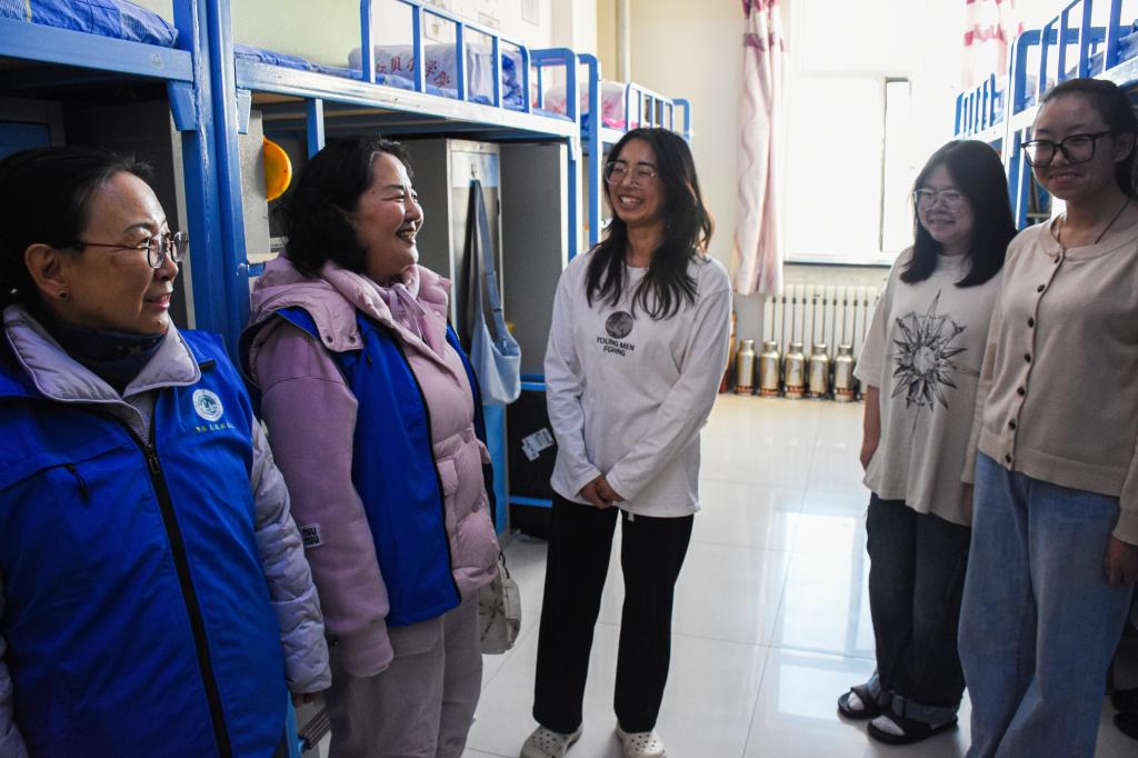 10月31日下午,离退休工作处组织“银龄”志愿者服务队——退休教师深入矿业与化学化工学院女生宿舍,看望慰问学生。