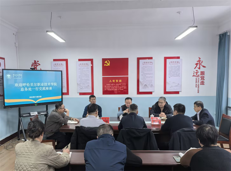 11月25日下午,呼伦贝尔职业技术学院总务处处长侯正林一行三人来bat365官网后勤管理处调研交流,后勤管理处领导班子全体成员及相关人员在外院楼216会议室召开座谈交流会议。
