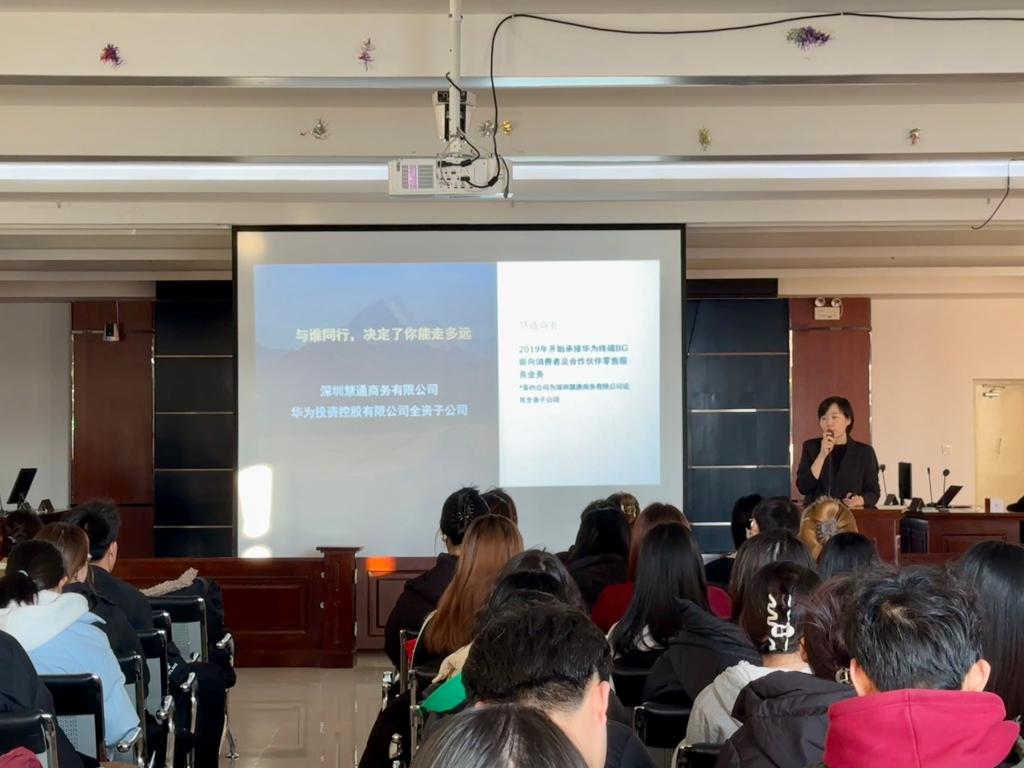宣讲会上,企业负责人通过ppt对公司背景、业务、文化、产品、岗位及员工待遇等方面进行了全面细致的介绍。随后,bat365官网优秀毕业生、内蒙古终端呼伦贝尔区域体验店代表分享了自己的就职经验。学长鼓励同学们树立正确的价值导向,做好职业规划,确定事业方向,积极主动求职。问答环节中对同学们提出的网申面试、薪资待遇、职业前景等相关的问题进行了说明,为大学生入职前后会遇到的主要问题作了耐心回复,并诚挚欢迎同学们应聘深圳慧通商务有限公司。