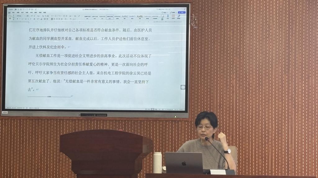 此次培训邀请了文学院新闻学专业教师瓦琳主讲,她围绕如何完善宣传稿件写作进行培训。针对校园新闻选题,她讲解了如何精准投送素材、优化选题方向;如何快速抓取关键信息,让抽象知识具象化;探讨新闻语言,剖析润色文案提升可读性的技巧。稿件结构方面,她详解标题、导语、主体、结尾等构成要件,强调以倒金字塔结构为主的组合优势,助力通讯员快速抓住重点、吸引读者。最后着重阐述如何利用AI结合人工,从逻辑、语言、事实等多维度把控稿件质量,并提醒通讯员们在撰写稿件中要注意避免内容同质化、保持新闻真实性和客观性等问题。