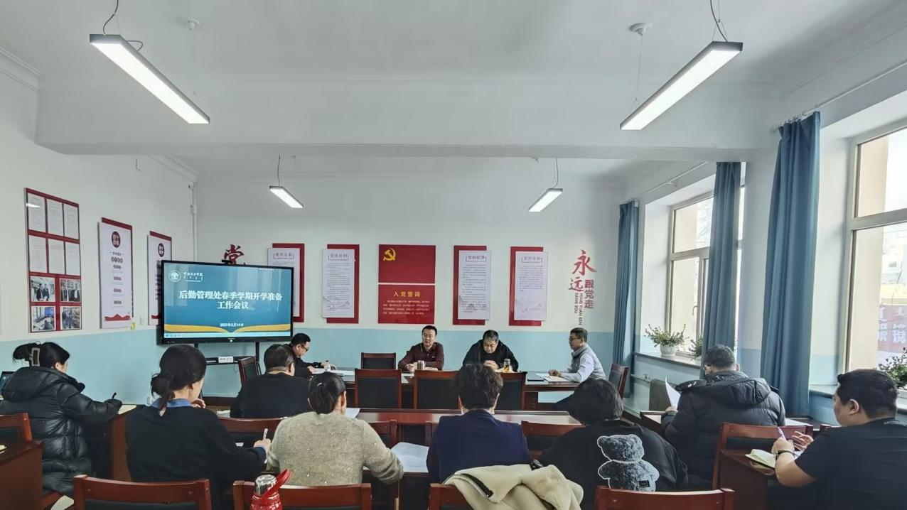 2月14日下午,后勤管理处在外院楼216会议室召开2025年春季学期开学准备工作专题会议,研究2025年后勤领域主要工作事项清单,安排春季学期开学各项后勤服务保障工作平稳有序开展。后勤管理处全体处、科级干部及重要岗位人员参加,会议由后勤管理处处长付刚主持。