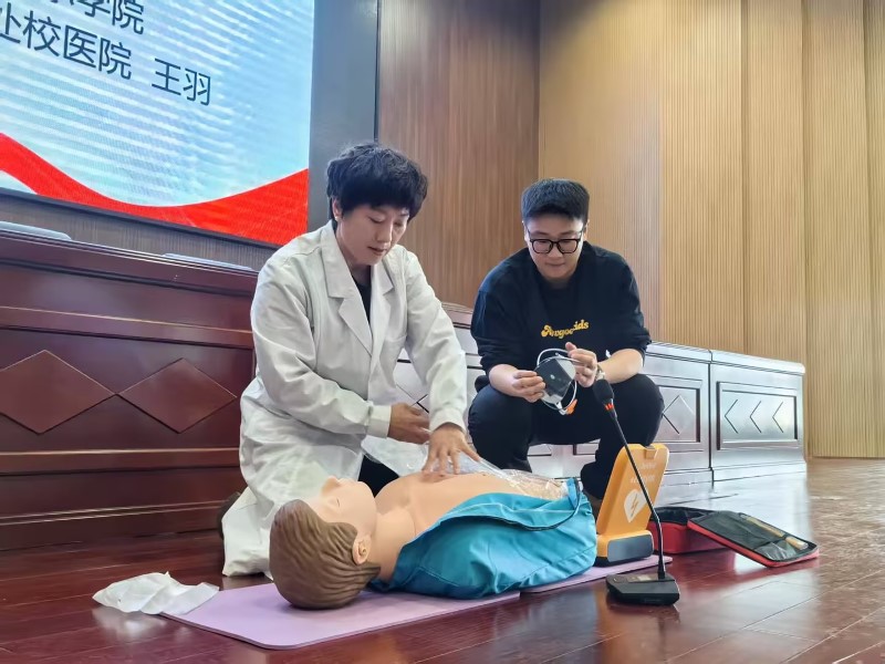 培训采用“理论 + 实操”模式。消防演练环节,安保队长万顺结合火灾案例分析、现场演示消防器材使用,提升食堂重点区域隐患排查能力。医疗救护培训中,校医院副院长王羽现场演示心肺复苏、AED和海姆立克急救法等理论结合实际操作,参训人员通过模拟实操掌握急救要领。食品安全模块聚焦舆情处置与风险防控,食品安全员邓春华从舆情应对、预防措施、整改机制等方面进行系统培训,强调严守食品安全底线,建立问题台账,实现闭环管理。