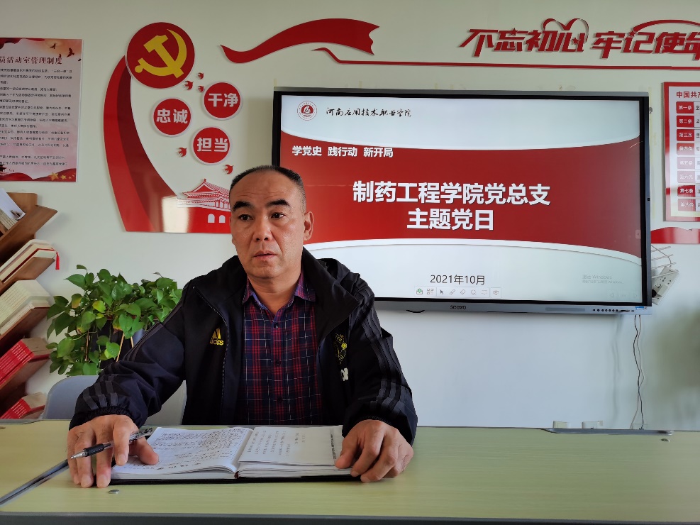 本周二10月19日下午,制药工程学院组织全体党员与教职工在办公楼501室,开展学习习近平总书记在陕西榆林考察时的讲话精神、在河北承德考察时的讲话精神和9月7日省委工作会议精神。会议由学院总支书记窦传斌主持。