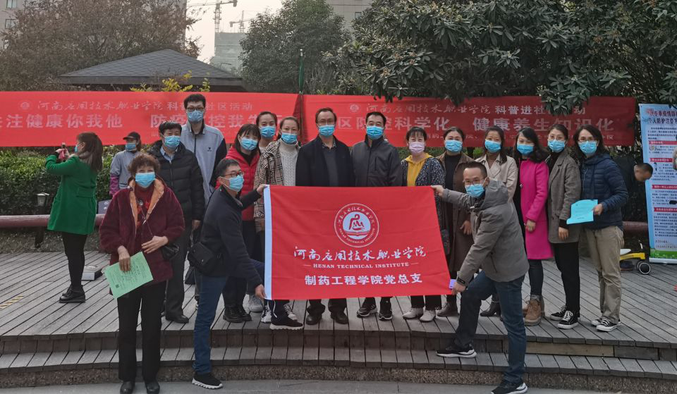 11月13日下午3点,制药工程学院全体党员教师和入党积极分子来到鼎立社区广场,开展了“社区防控科学化 健康养生知识化”的科普进社区党日活动。活动中,专业教师和学生志愿者们一边为辖区居民发放“用药小常识"宣传单、《秋冬季健康防护指南》宣传册,一边讲解个人如何搞好秋冬季防疫防控的注意事项,宣讲用药常识等内容,居民们听得非常仔细,志愿者们还耐心解答居民们提出的问题。