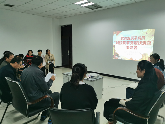 一、认真组织专题学习:必赢官网党总支组织全体党员对照党章、《关于新形势下党内政治生活的若干准则》、《中国共产党纪律处分条例》,从“18个是否”方面,查找自身不足、全面检视剖析,并列出问题清单。