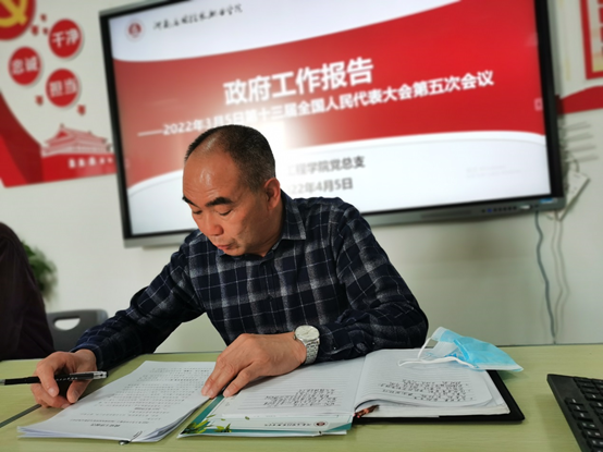 2022年4月5日下午,制药工程学院党总支在办公楼501党员活动室组织《2022年政府工作报告》学习活动,全体党员和教职工参加学习,活动由党总支书记窦传斌主持。