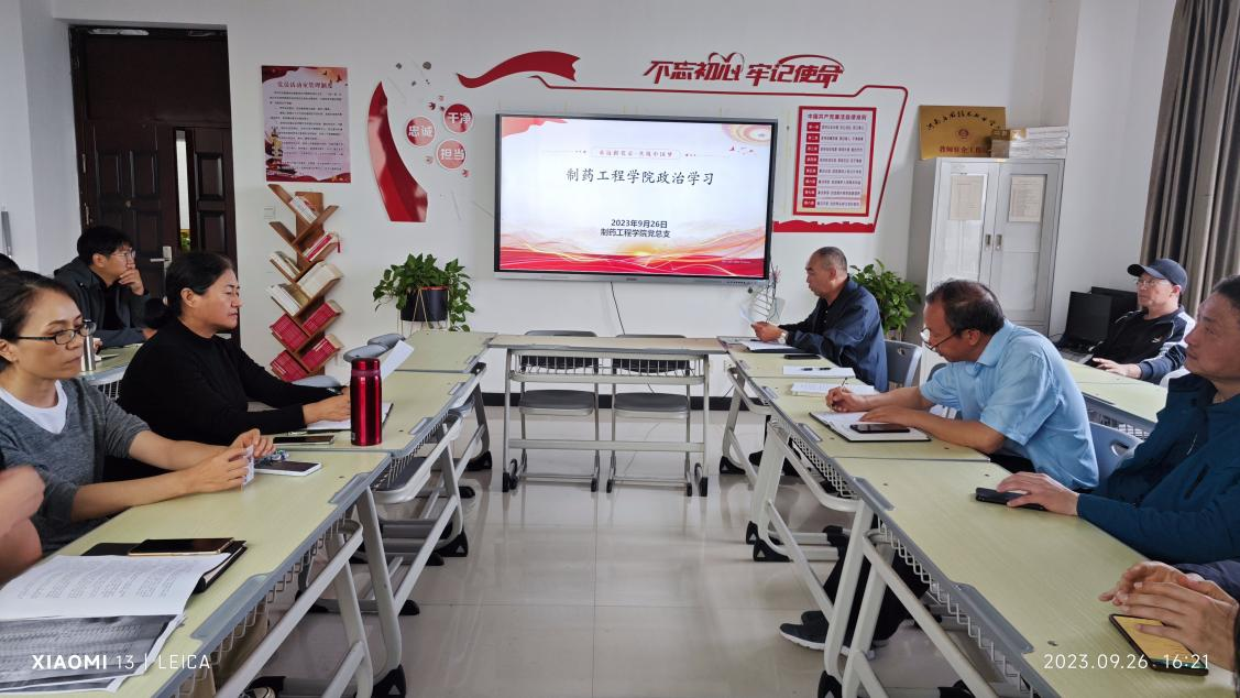 根据学校党委宣传部(统战)部安排,制药工程学院党总支于2023年9月26日在501党员活动室开展政治理论学习专题会,会议由学院党总支书记窦传斌主持,学院全体教师参加了学习。