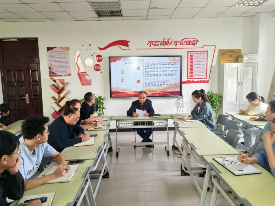 窦传斌带领大家学习《违反师德师风典型案例汇编(第二辑)》,窦传斌指出,教师这一职业代表了无私奉献的精神,是高尚社会精神的显著体现。大家做为一名教师要始终不忘初心、牢记使命,强化信仰,坚决维护教师的尊严,在日常生活中也要自觉规范自己的行为,做到知敬畏、存戒惧、守底线。