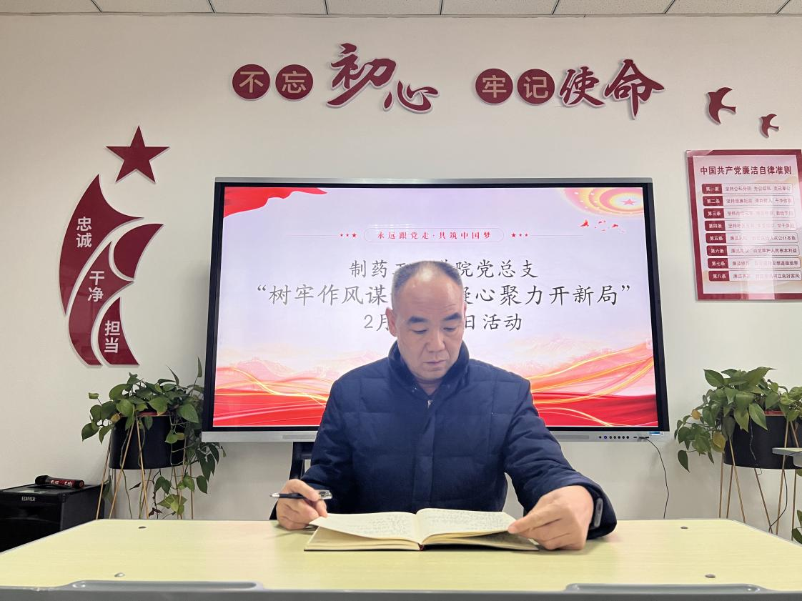 为深入开展学习贯彻习近平新时代中国特色社会主义思想主题教育,进一步提高党内生活质量,教育引导广大党员、干部持续深入学习贯彻习近平总书记的重要讲话精神,根据学校党委要求,结合学院实际,制药工程学院于2月2日上午在301党员活动室开展2月份主题党日活动。活动由学院党总支书记窦传斌主持,全体党员参加了活动。