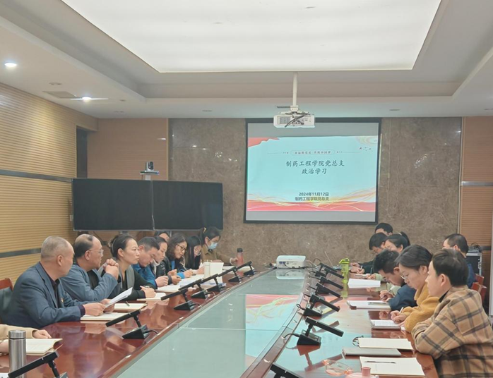 根据学校党委宣传(统战)部安排,制药工程学院党总支于2024年11月12日下午在301党员活动室开展政治理论学习专题会,会议由学院党总支书记窦传斌主持,全体教职工参加学习。