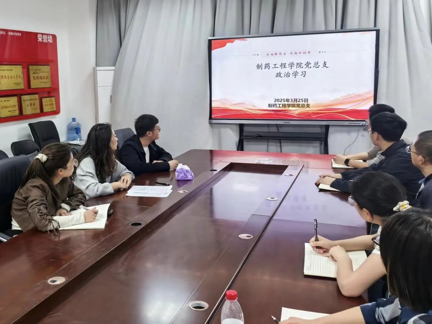 根据学校党委宣传(统战)部安排,制药工程学院党总支于2025年3月25日下午在301党员活动室开展政治理论学习专题会,本次学习由总支纪检委员、副院长高莉丽主持,全体教职工参加学习。