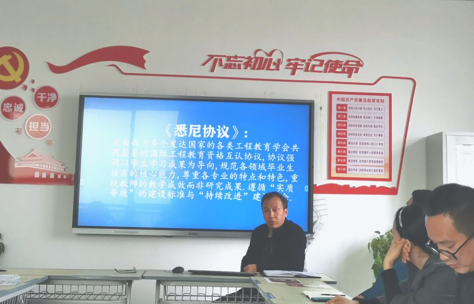 为学习国际化专业建设的理念范式,深化专业内涵建设,规范专业人才培养的课程标准,制药工程学院于2022年3月15日下午15:00-17:00,在办公楼会议室501召开悉尼协议与专业建设专题教研活动。会议由院长韩恩远主持,参会人员有制药工程学院专职教师、实训管理员和辅导员。
