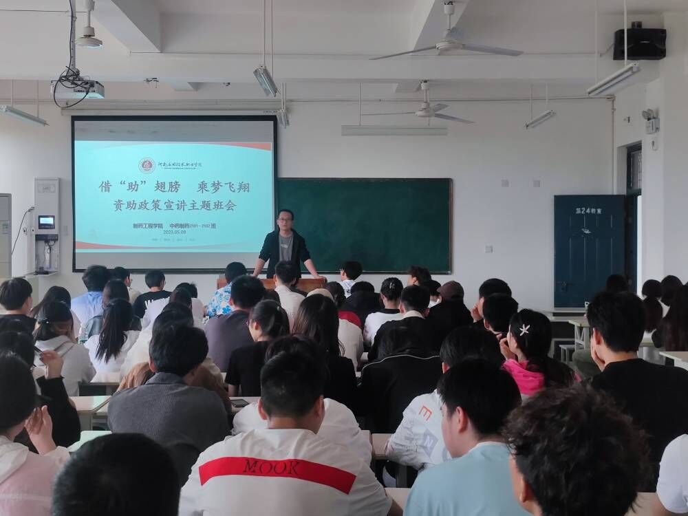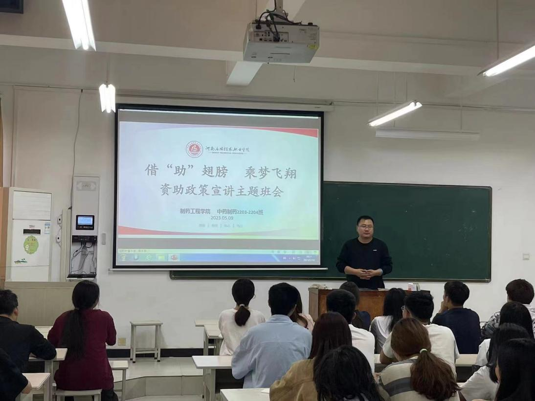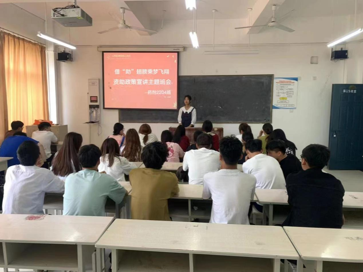 为使同学们更好的了解学校资助政策,推进必赢官网资助工作平稳有序进行,根据学校整体工作安排,2023年5月9日-10日,制药工程学院21级、22级各班开展以“借“助”翅膀,乘梦飞翔”为主题的资助政策宣讲。