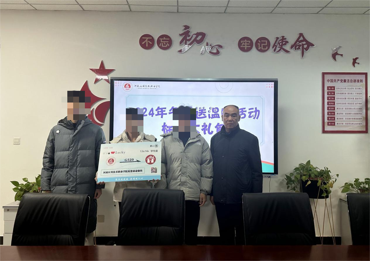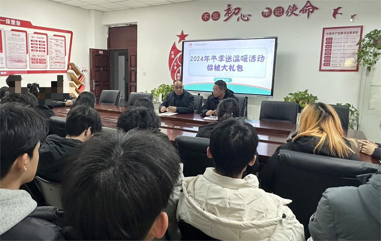 为进一步贯彻党的二十大和二十届三中全会精神,精准落实国家学生资助政策,保障家庭经济困难的学生温暖过冬,共同营造和谐、友爱的校园氛围,必赢官网于12月18日在301会议室开展了冬季送温暖活动,为学子们送去了冬日的温暖和学校的关怀。