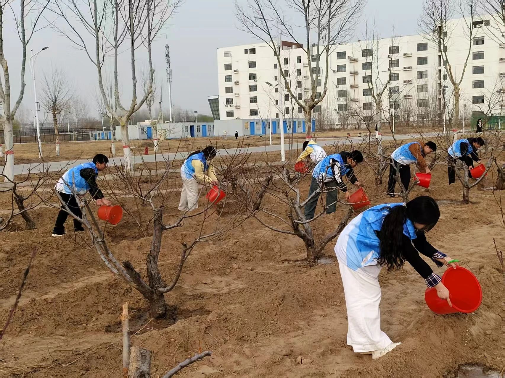 活动伊始,全体参与者迅速按照预先安排分成了两个小组,每个小组都充满了热情与活力,大家纷纷化身为“绿色守护者”,积极投入到后操场的绿植养护工作中。其中一组负责清理杂草,他们仔细辨认每一株杂草,小心翼翼地将其连根拔起,确保不伤害到周围的绿植;另一小组则负责浇水,他们提着水桶,认真地为每一棵树苗浇灌,确保水分充足,整个过程中,大家分工明确、配合默契,志愿者的行动为校园增添了生机。
