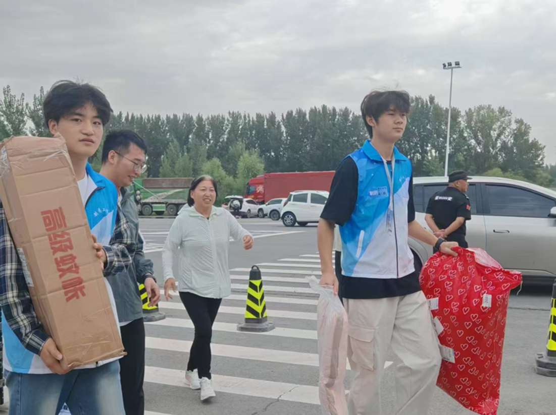 从清晨到日暮,校园各处都活跃着志愿者们忙碌的身影——从校门引导、入学信息登记,到协助新生搬运行李、送达宿舍楼,他们的足迹串联起新生入学的关键环节。在登记处,志愿者们耐心指导新生填写资料、办理手续,细致解答关于校园生活、课程安排的各类疑问;在宿舍楼前,他们主动接过新生手中的行李,一边帮忙搬运,一边热情介绍宿舍周边环境,用行动全力保障每一位新生顺利入住。