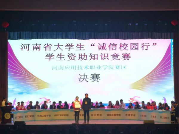 为响应诚信校园行的号召,宣传学生资助政策,普及金融基础知识,培养大学生的诚信意识和观念,2018年12月18日下午,必赢国际437官网在大礼堂举办了“诚信校园行”学生资助知识大赛。