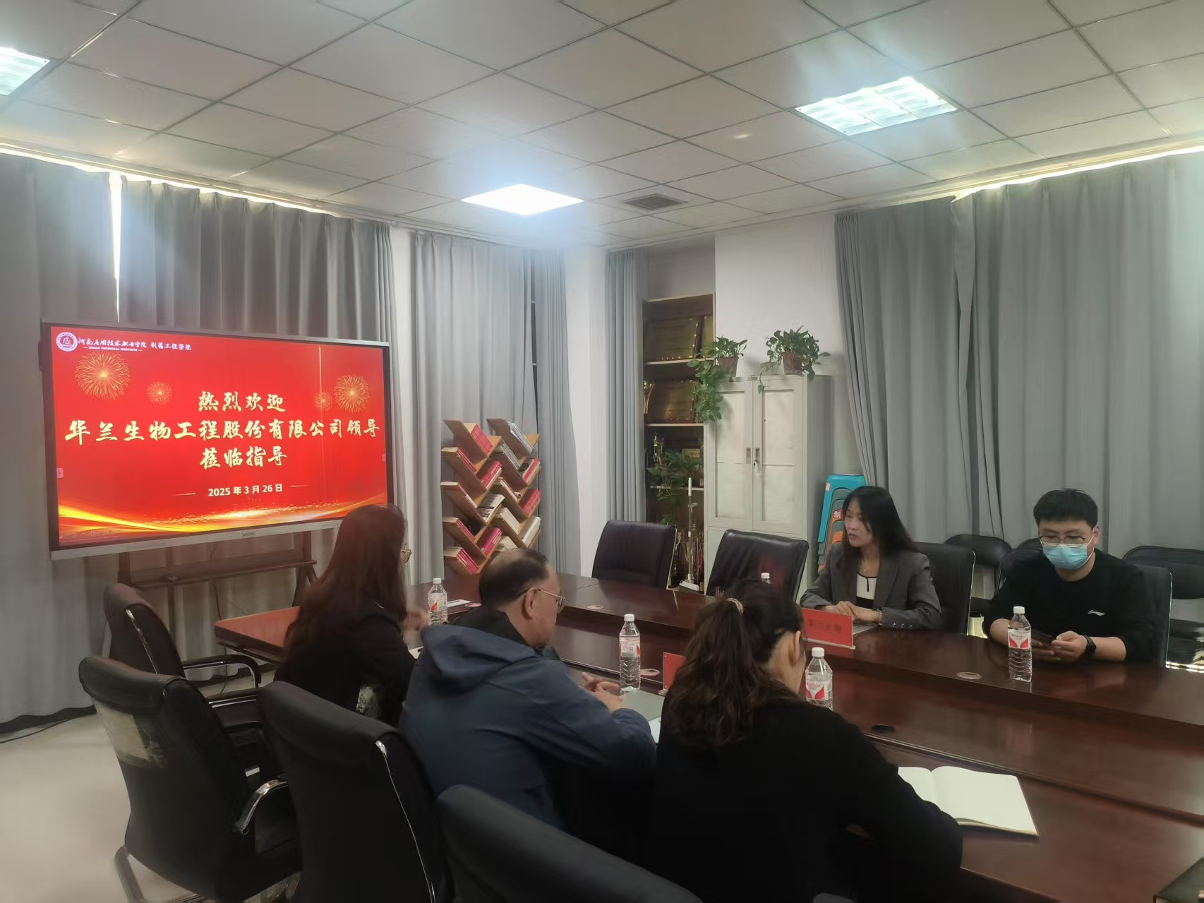 首先,制药工程学院院长吕玮、副书记白小茗及副院长高莉丽与华兰生物企业代表就订单班学生选拔标准及实习细节进行座谈。