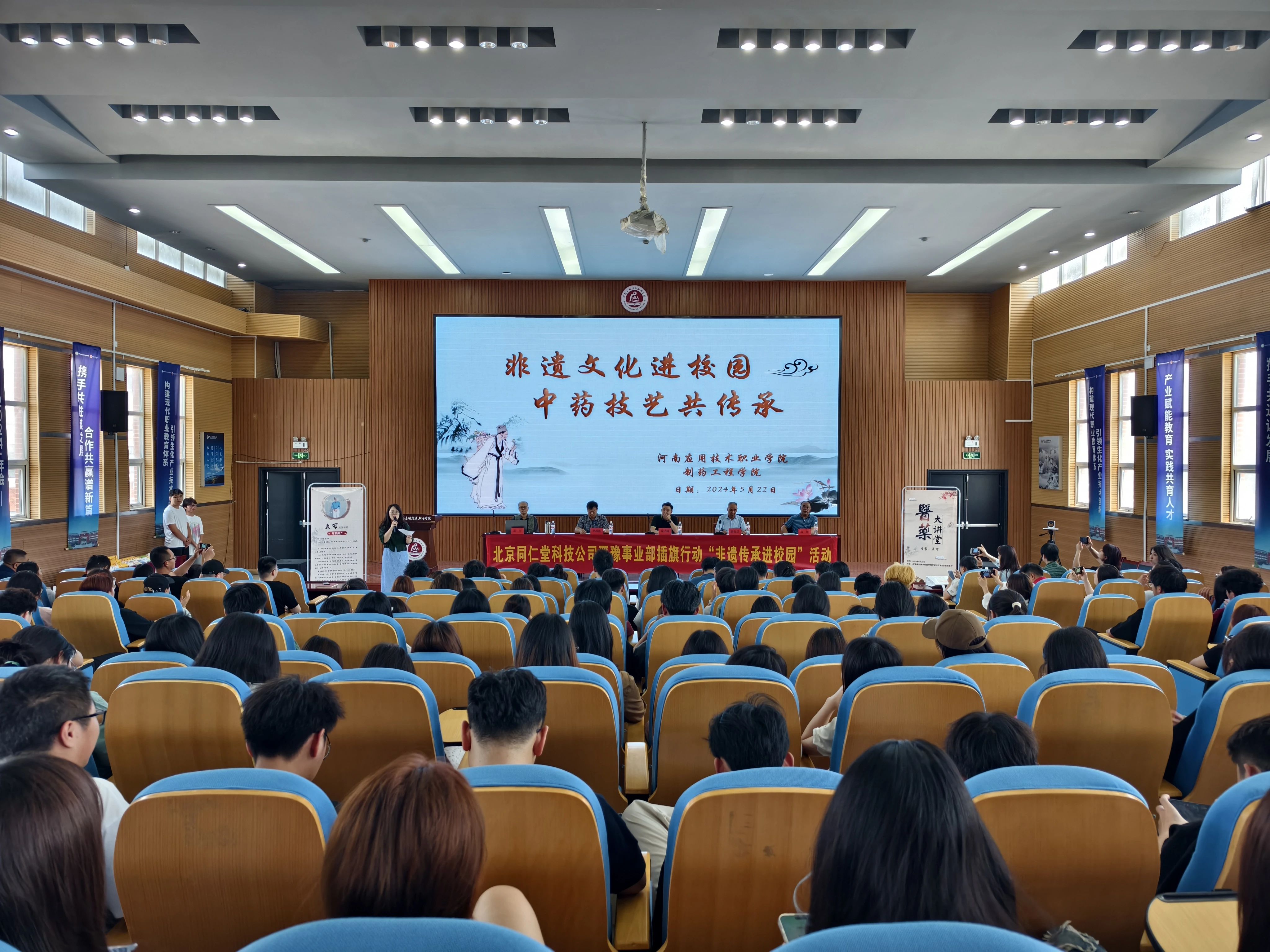 为进一步弘扬优秀传统文化,充分发挥中华优秀传统文化育人作用,加强学生对传统中药制剂工艺的认知,引导学生增强文化自信、专业自信,5月22日下午,制药工程学院邀请北京同仁堂资深讲师孟可进行开展“非遗文化进校园 中药技艺共传承”专业讲座。北京同仁堂科技发展股份有限公司晋豫事业部经理姜子琦、区域经理李战胜,制药工程学院党总支书记窦传斌、院长吕玮出席活动,学院专兼职教师代表和各专业学生代表到场聆听讲座。活动由学院副书记白小茗主持。
