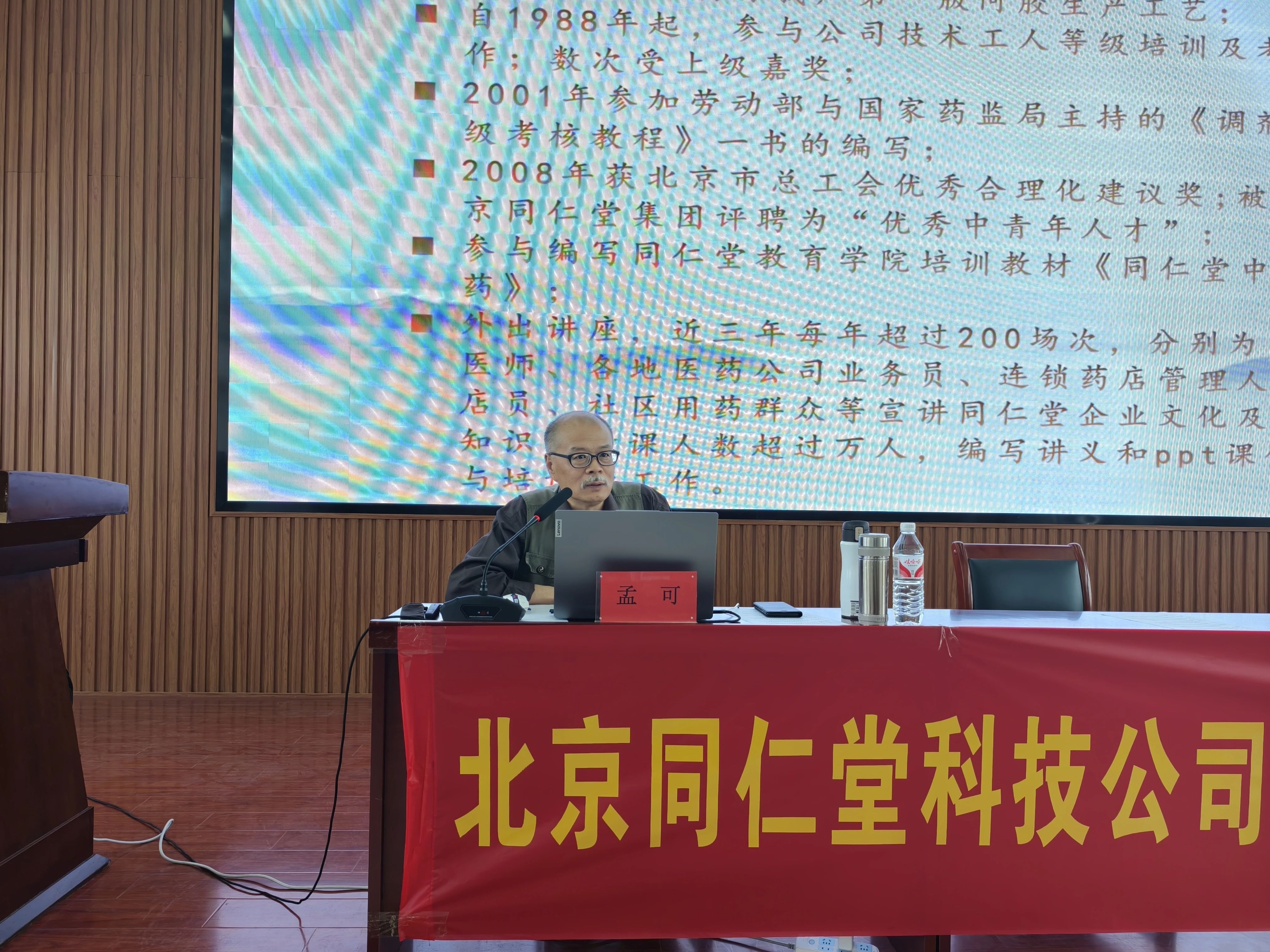 活动中,孟可老师从北京同仁堂的企业发展历程、“中药炮制”传统技艺两个方面进行讲解。他讲到,北京同仁堂的秉承传统中药炮制技艺,坚持继承和发扬皇家御药制药传统,以“同修仁德,济世养生”为己任,恪守"炮制虽繁必不敢省人工,品味虽贵必不敢减物力"的古训,百年来,才能做到始终品质如一。在现代制药技术的基础上,持续坚持‘以质为命’的质量理念,才能持续为患者提供高质量的药品,他希望同学们在未来的学习和工作中,也能秉持“以人为本、质量第一”的职业理念,扎实学好专业,为中医药传统文化的发扬光大贡献自己的力量。