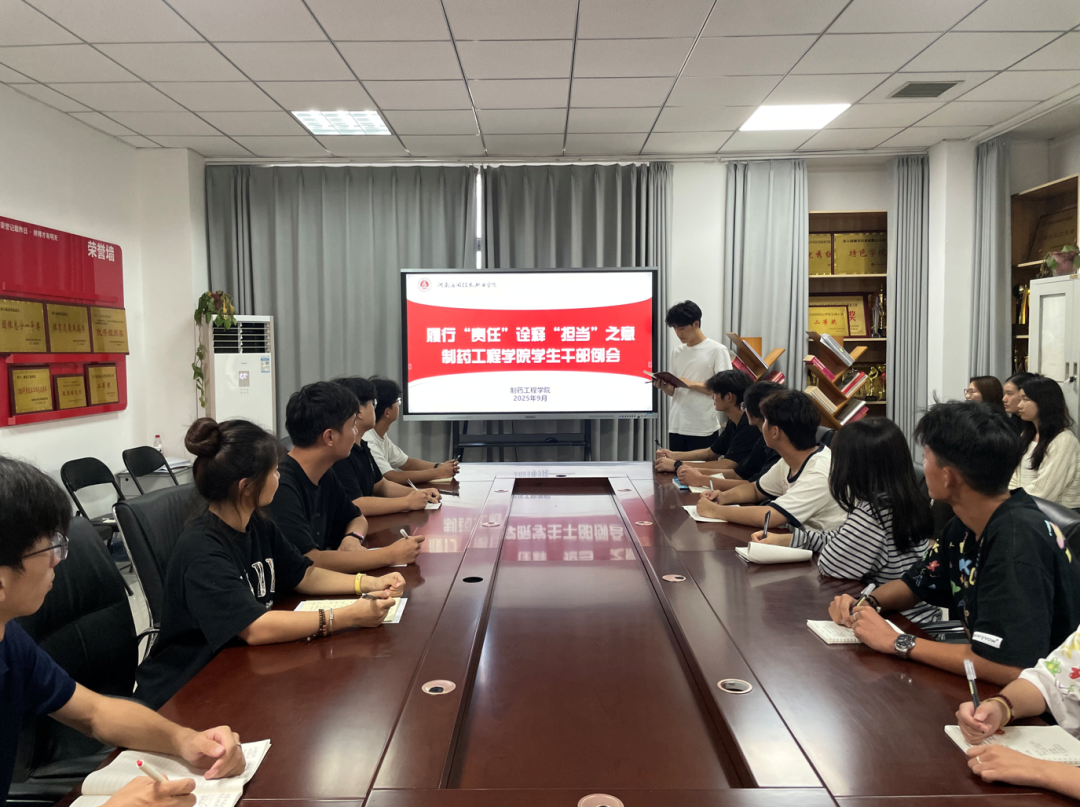 为了进一步增强学生干部的自我管理和自我服务意识,提高干部们的能力水平,制药工程学院于2025年9月1日在办公楼301召开了大二学生干部第一次例会,此次例会各部负责人及主席团参与,会议由学生会主席团成员余生涛主持。