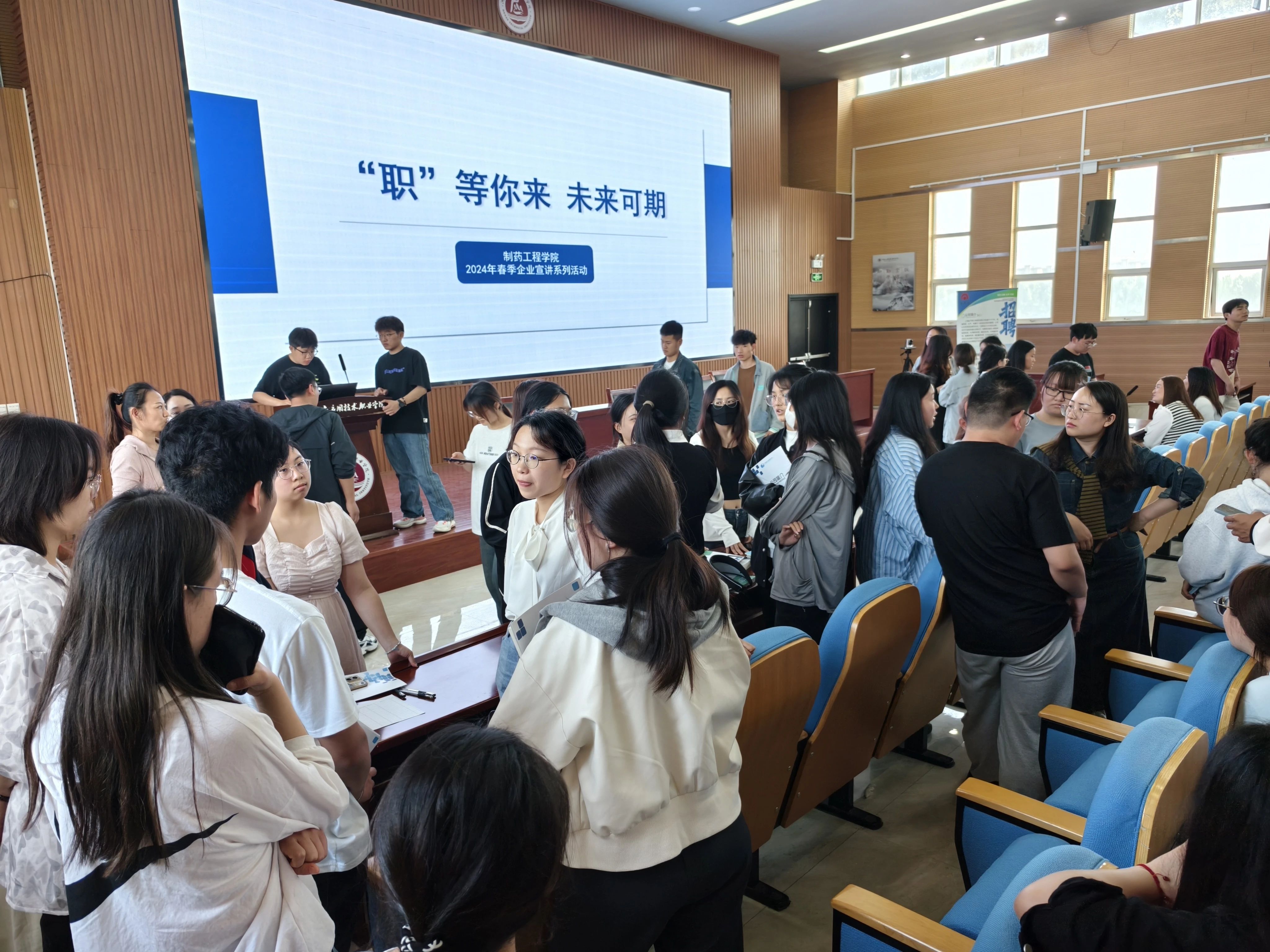 为贯彻落实党的二十大精神,拓宽必赢官网毕业生就业渠道,把握优质就业岗位,切实落实推进就业相关工作,促进学院毕业生充分高质量就业,2024年4月12日制药工程学院邀请上海金不换兰考制药有限公司、开封明仁药业有限公司开展专场宣讲活动。上海金不换兰考制药有限公司人事经理蓝雨、开封明仁药业有限公司生产副总刘华分别带队莅临必赢官网开展校招宣讲,学院党总支副书记白小茗、就业专员邢星、辅导员代东炎及学院2025届200余名毕业生参加宣讲会,宣讲会由邢星主持。