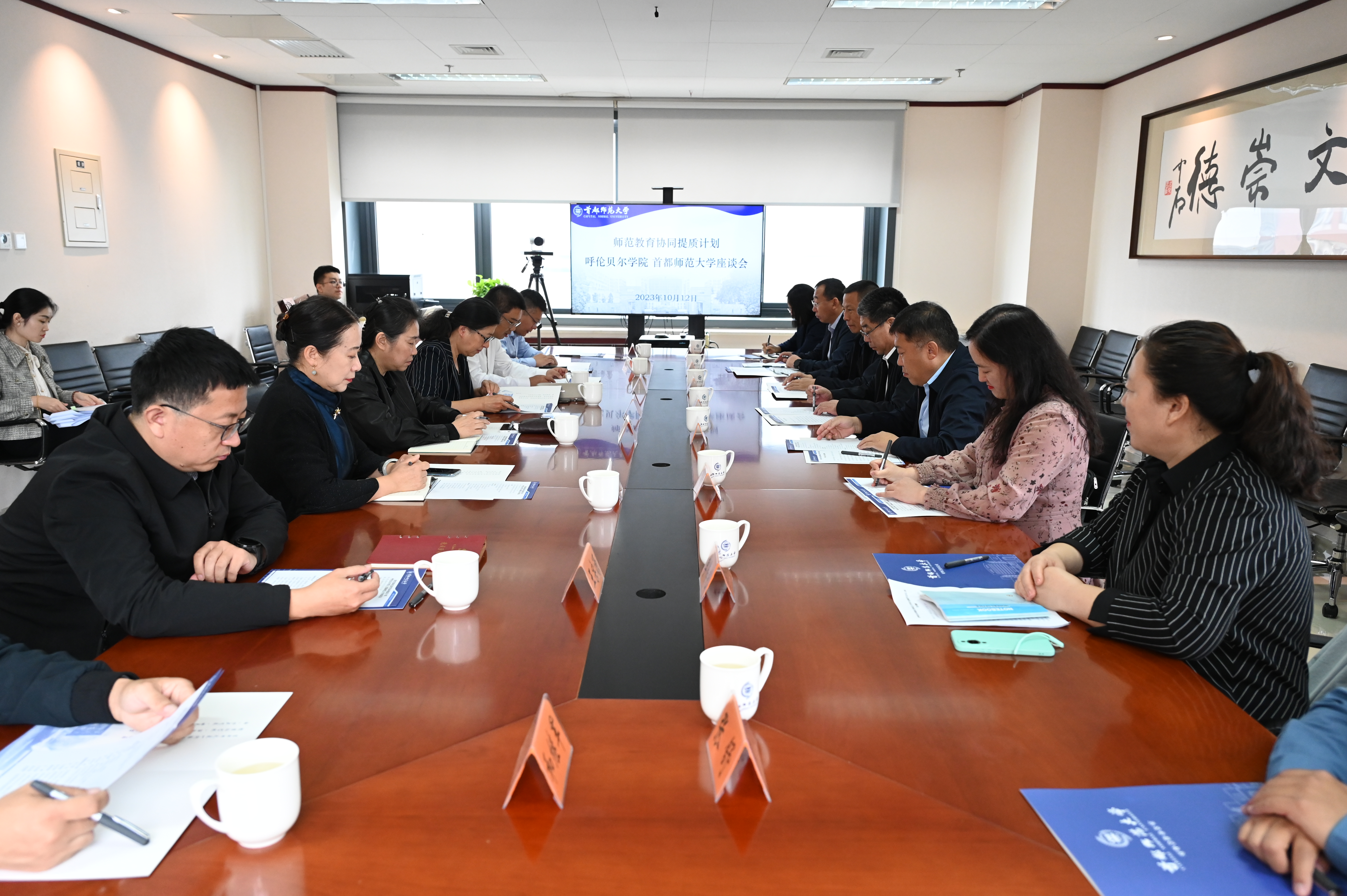 为深入推进主题教育走深走实,推动落实教育部“师范教育协同提质计划”,主动对接牵头帮扶学校,保障bat365官网学科专业建设质量有序提升,切实提高人才培养质量,10月12日,bat365官网党委书记李文阁,校党委委员、副校长尹立军一行8人到首都师范大学座谈交流。首都师范大学校党委书记缪劲翔,党委常委、副校长李小娟及相关部门负责人参加交流活动。会议由首都师范大学对外合作办公室主任钊剑主持。李小娟首先详细介绍了首都师范大学开展协...