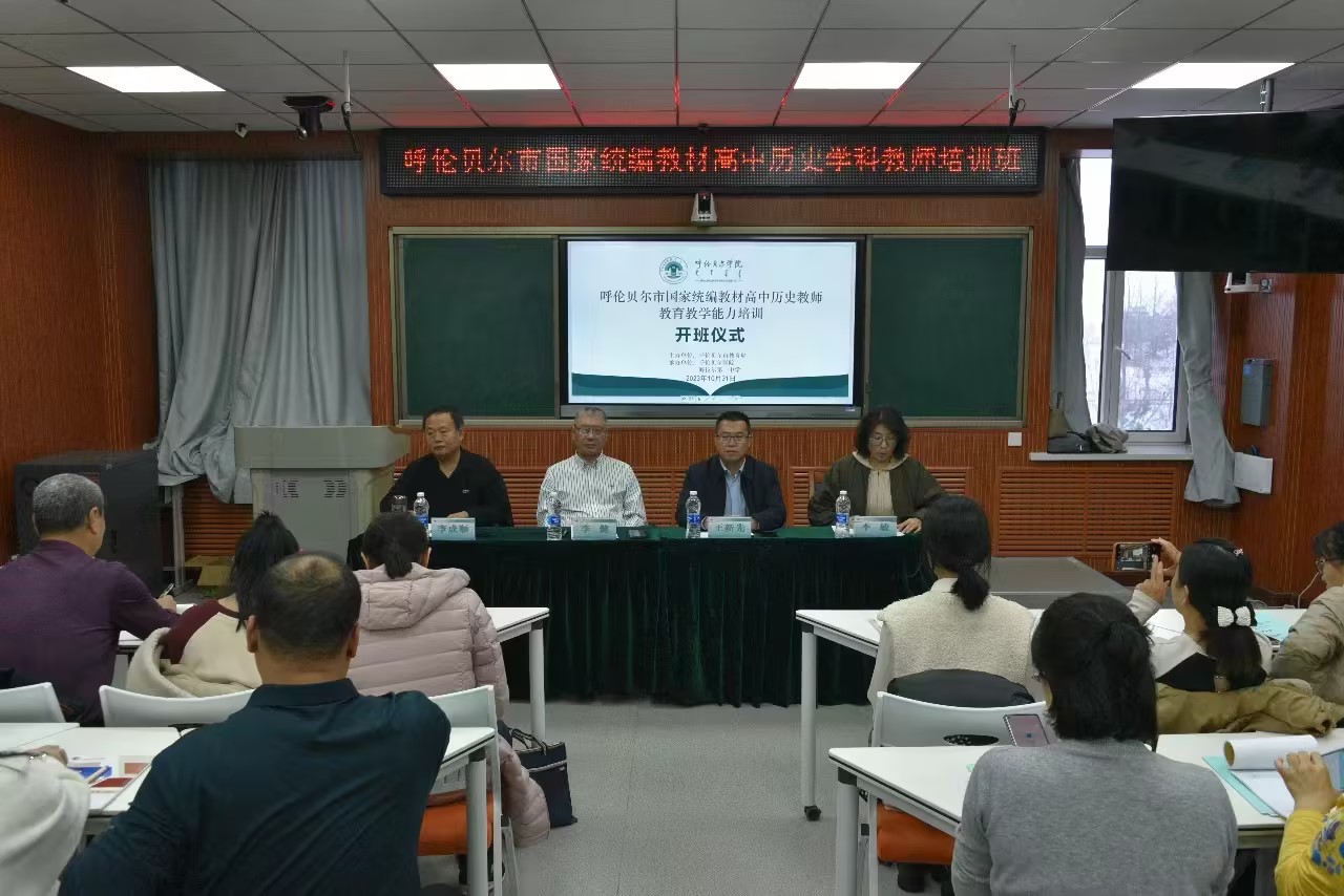10月31日上午,由呼伦贝尔市教育局主办、bat365官网和海拉尔第二中学共同组织承办的国家统编教材呼伦贝尔市高中历史学科教师教育教学能力培训在海拉尔第二中学举行开班仪式。bat365官网继续教育学院党总支书记李健,海拉尔第二中学党委委员、副校长王新先,山东省济宁一中校长助理、教科研处主任、历史学科基地首席教师李成顺,以及参训的47名高中历史学科教师参加了开班仪式。开班仪式由海拉尔第二中学教务科副科长李敏主持。李健强调,历...