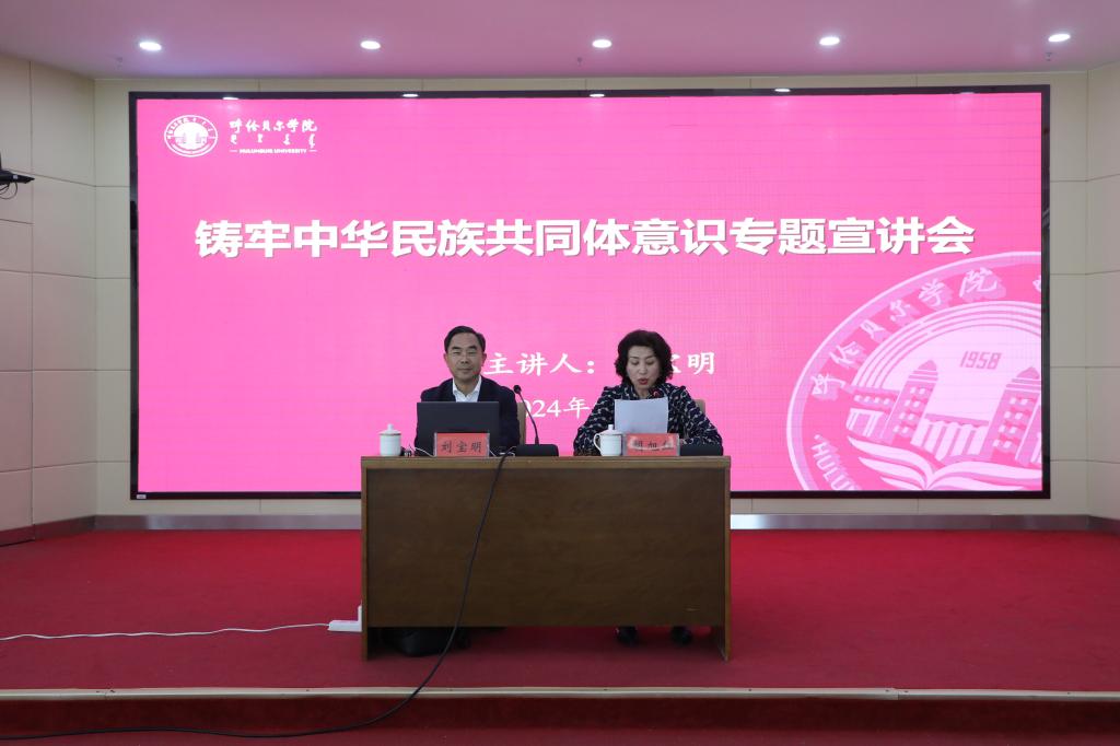 5月21日下午,bat365官网在崇文楼A201会议室召开铸牢中华民族共同体意识专题宣讲会。校党委班子成员、全校副处级以上领导干部、各党总支统战委员、机关党委各支部统战委员、党外知识分子代表参加会议。会议由校党委委员、统战部部长胡旭红主持。本次宣讲会特别邀请中央民族干部学院干部教育研究中心主任刘宝明教授作题为《全方位建设模范自治区需要重点讲清的若干基本问题》的专题讲座。会上,刘宝明从讲清楚内蒙古自治区在新时代党和...