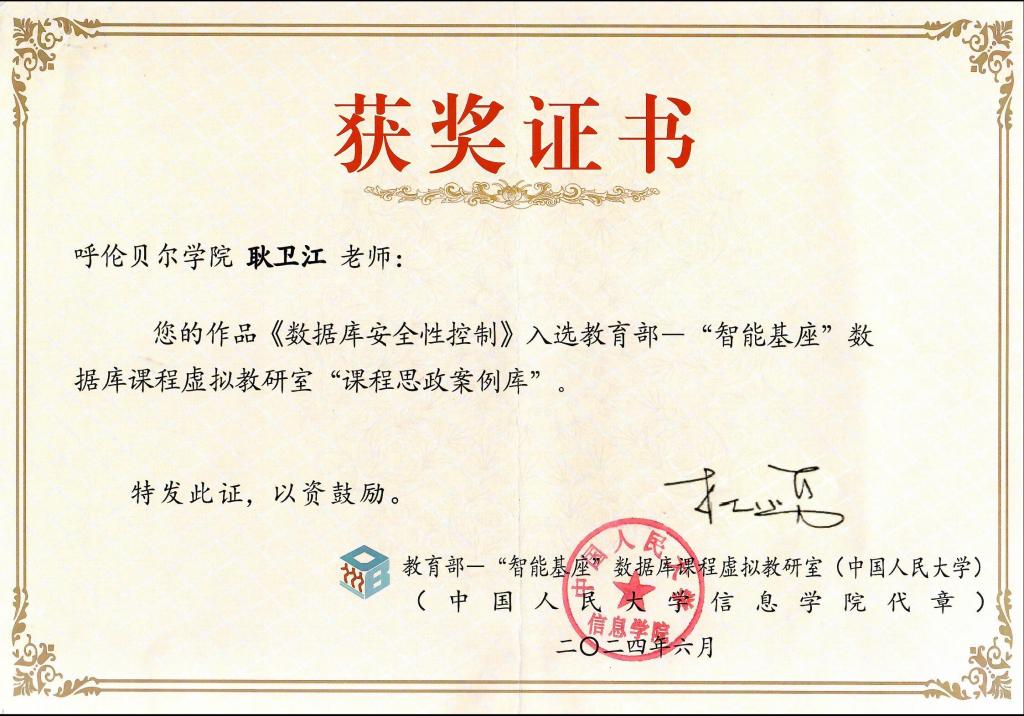 6月21日,由bat365中文官方网站人工智能与大数据学院《数据库原理》课程教学团队选送的《数据库安全性控制》课程思政教学案例参加由教育部数据库课程虚拟教研室(牵头单位:中国人民大学)主办,相关企业协办的“全国高校数据库课程思政教学案例”评选活动,并入选教育部─“智能基座”数据库课程虚拟教研室课程思政案例库,获得入选获奖证书。本次评选旨在落实教育部高等教育司关于开展虚拟教研室试点建设工作的通知,贯彻落实立德树...