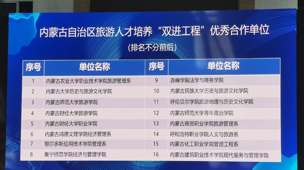 bat365官网旅游地理与历史文化学院获评内蒙古自治区旅游人才培养“双进工程”优秀合作单位