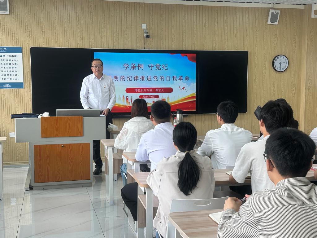为推进党纪学习教育走深走实,6月22日下午,校党委副书记张宏天在艺术楼503教室讲授纪律党课,教育学院、工学院部分师生党员参加学习。本次党课以《学条例、守党纪,以严明的纪律推进党的自我革命》为主题,从开展党纪学习教育的重要性和必要性,《中国共产党纪律处分条例》(以下简称《条例》)修订的重要意义、主要亮点解读和在《条例》的贯彻执行中强化四种意识等四个方面进行详细讲解。张宏天系统梳理了“党的自我革命”战...