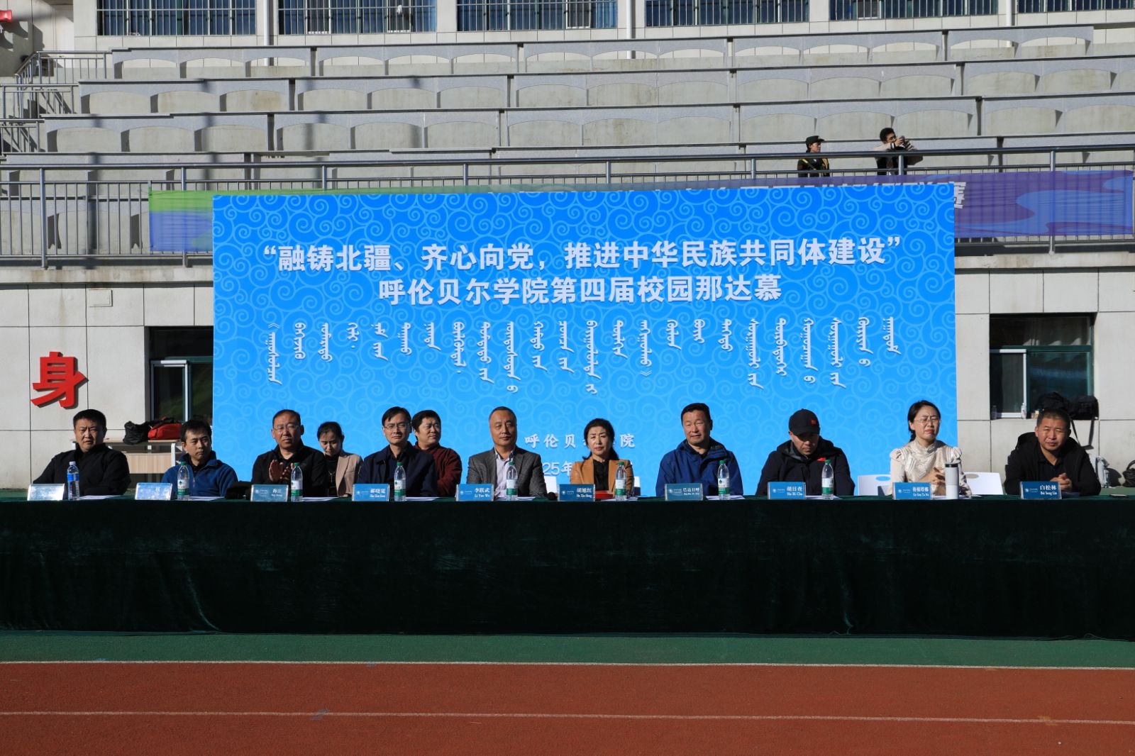 金秋时节,丹桂飘香,呼院操场,旗展风扬。9月27日,bat365中文官方网站“融铸北疆、齐心向党,推进中华民族共同体建设”第四届校园那达慕开幕式在东山体育场举行。学校党委委员、副校长李跃武,相关职能部门、二级学院负责人出席开幕式。本届那达慕由党委统战部主办,蒙古学学院承办。李跃武宣布校园那达慕开幕。校党委委员、统战部部长胡旭红在致辞中强调,那达慕是中华民族传统体育活动,体现着中华民族的价值观与审美观,鼓励学生...