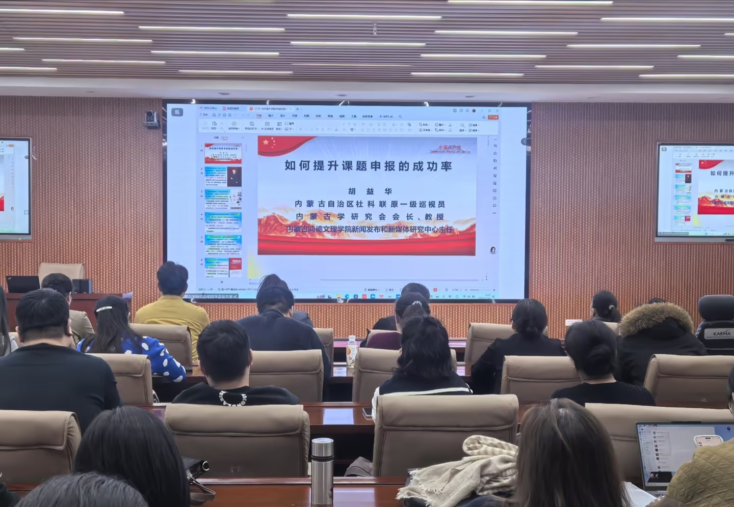 为深入推进组织化科研工作,助力科研人员精准把握国家社科基金项目及社科类课题申报要点,提升申报质量与成功率,促进全校科研工作高质量发展,12月19日下午,科学技术处在崇文楼A501会议室举办专题辅导讲座。本次讲座采取“线下集中+线上授课”相结合的方式,特邀内蒙古自治区社科联原副主席、一级巡视员胡益华教授主讲,各二级学院及科研机构科研骨干齐聚现场聆听学习。讲座中,胡益华以“如何提升课题申报的成功率”为题,结...